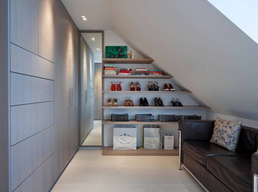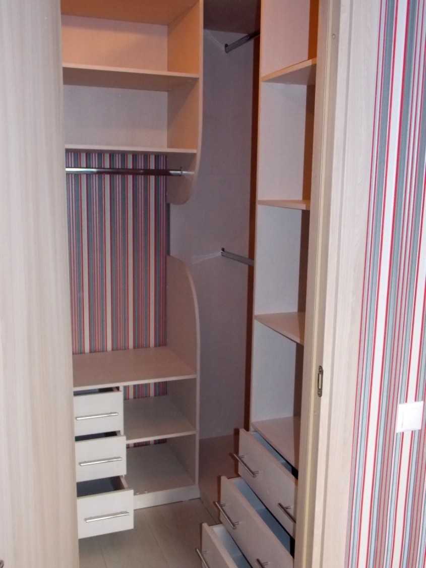 В малогабаритных комнатах для современных гардеробных используются кладовки, которые зачастую прилегают к спальне, а также ниши. Если помещение имеет неправильную форму, в место для хранения превращают нефункциональную часть, придавая помещению правильные очертания. Также можно отделить место вдоль стенки.