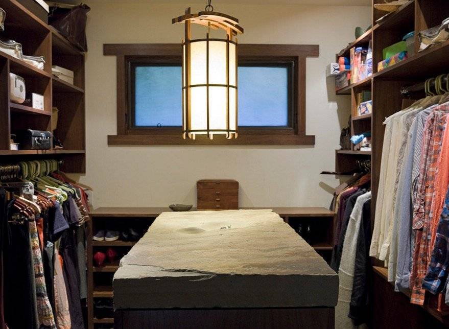Обычно гардеробная – комната без окон, поэтому о нормальном освещении и проветривании речи не идет.