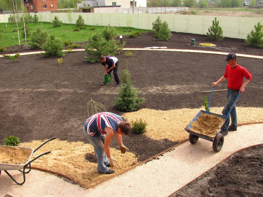 - Если земля песчаная или песчано-гравийная, то в плодородный слой нужно добавить больше глины для удержания влаги.