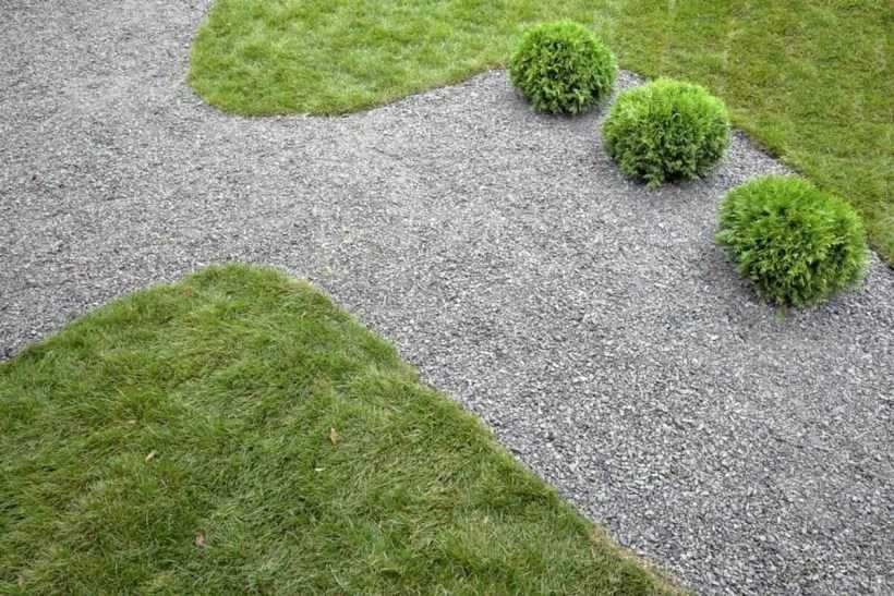 Бордюры нужны на 3-4 см выше почвы. Под гравийное покрытие кладется слой геотекстиля, он сократит образование сорняков и предотвратит образование колеи. Для профилактики необходимо пропалывать все выросшие сорные травы.