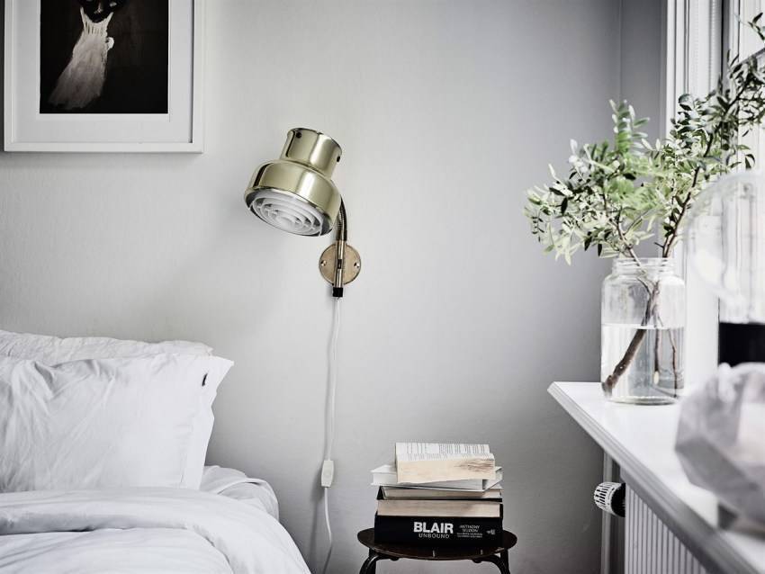 - небольшой настенный светильник или бра непосредственно над постелью;