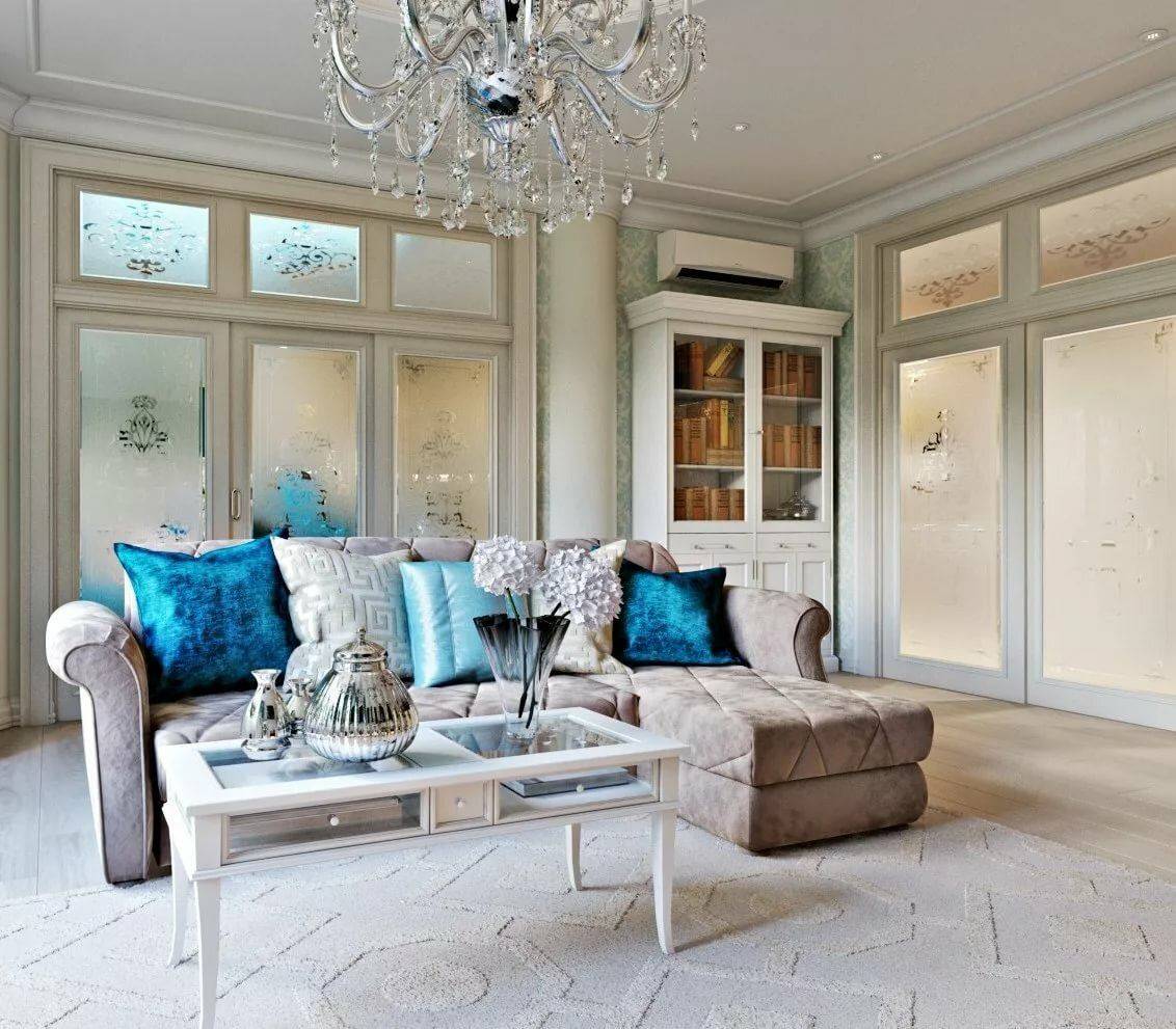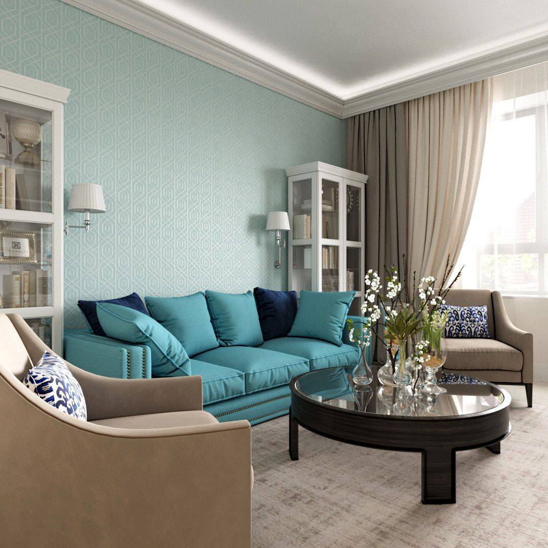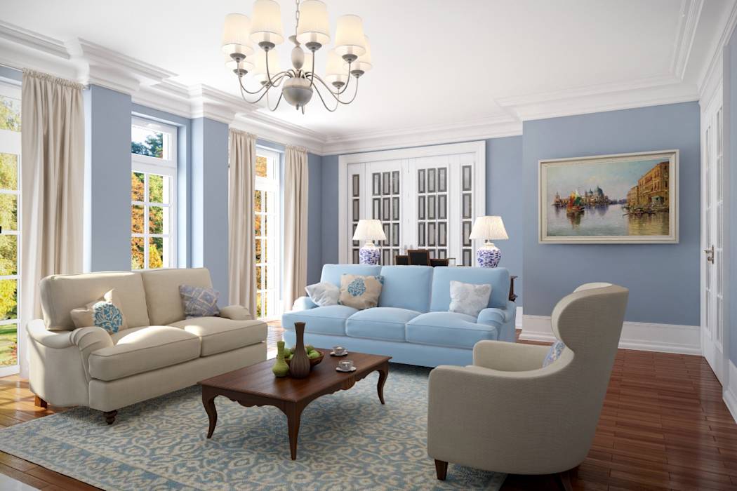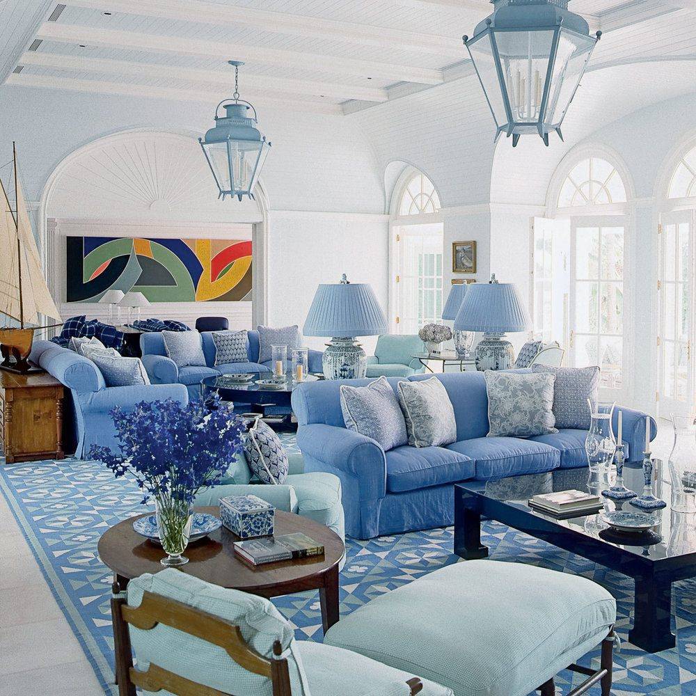 Гостиная в голубом цвете: удачные сочетания с другими расцветками