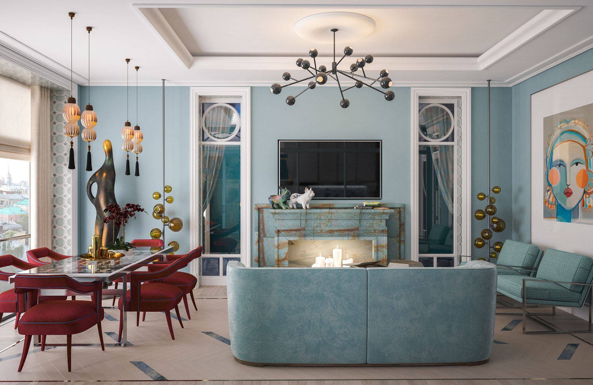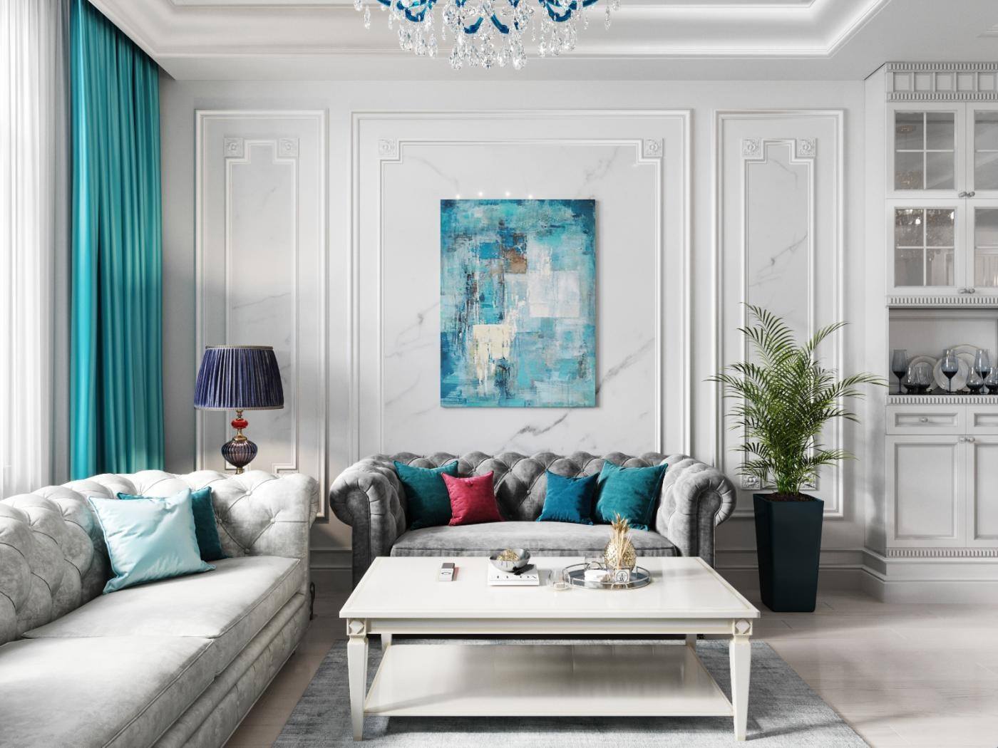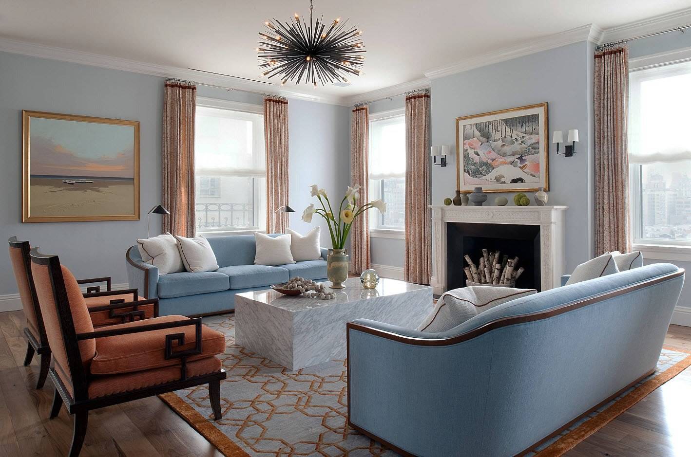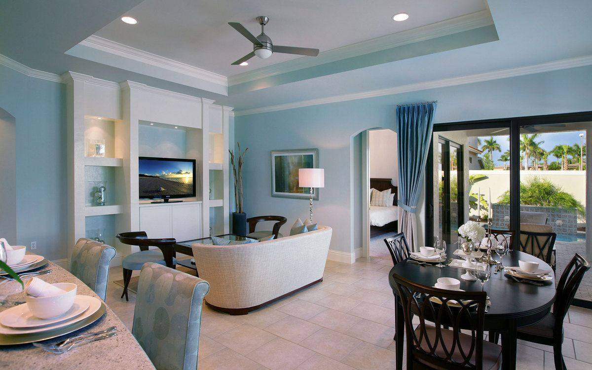 Гостиная в голубом цвете: удачные сочетания с другими расцветками