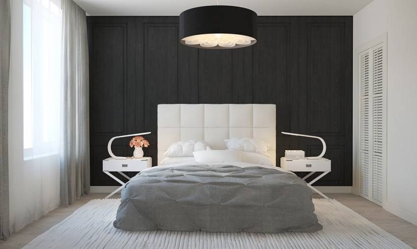В интерьере спальни чёрный следует использовать в качестве акцента