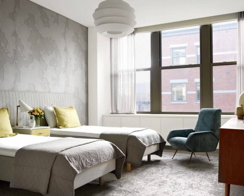 Бежевый и серый — это цвета, которые неотъемлемо связаны с дизайном гостиничных номеров … и это правильно. Людям, которые ценят удобство проживания в отеле вдали от дома, такой дизайн обязательно понравится. Здесь отлично подойдут бежевые стены и кровать с бежевым стеганым изголовьем. Кроме того, несколько светильников светло-бежевого оттенка. На кровати будут идеальны белоснежные простыни покрытые серым лоскутным одеялом, украшенным белыми, серыми и бежевыми подушками.