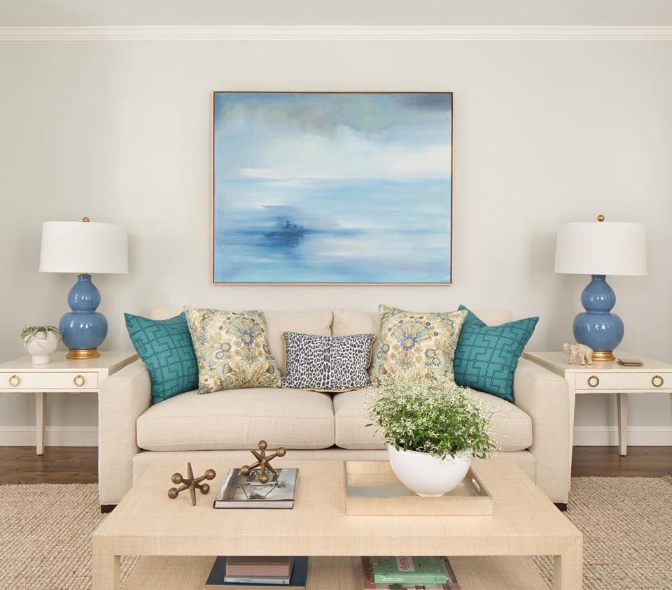 Голубой идеально сочетается с песочными расцветками – эту комбинацию дизайнеры считают беспроигрышным вариантом.