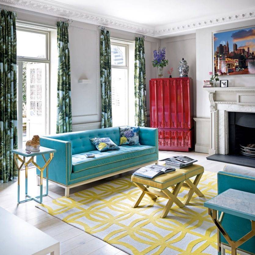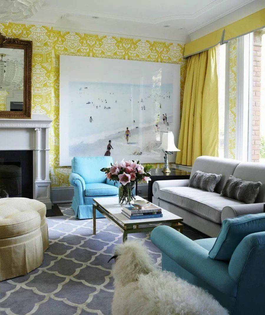 Для тех, кто убежден, что голубой такой же скучный, как серый или белый, можно рассмотреть его комбинацию в гостиной с желтым. Это более смелое решение, которое отлично впишется в ваш интерьер. Пример удачного сочетания — синий и желтый в гостиной.