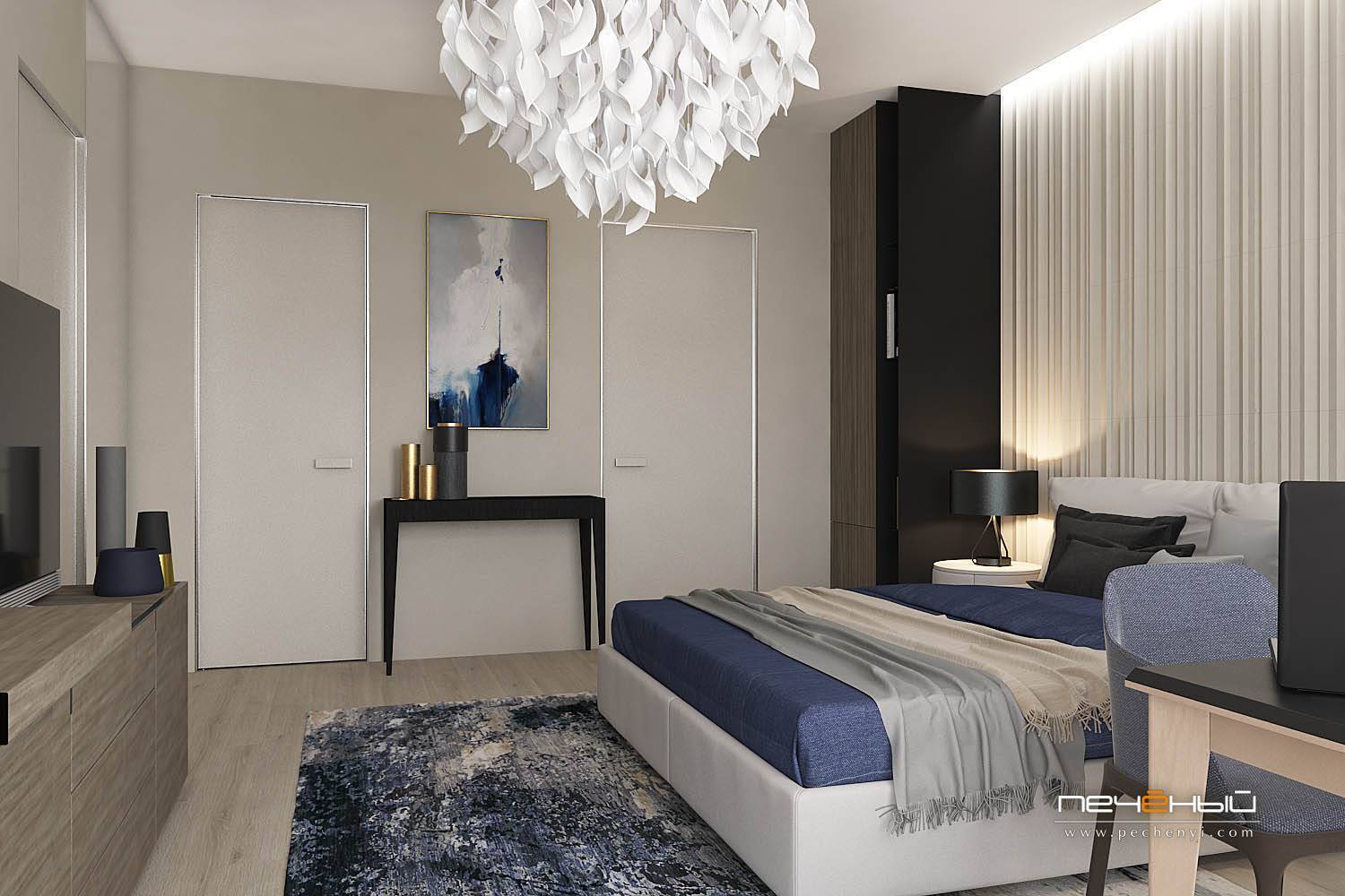 Чёрный цвет в голубой спальне