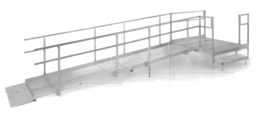 Данные конструкции бывают как однопролетными, так и многопролетными и обязательно должны дополняться перилами, в противном случае не будут отвечать существующим правилам. Откидные пандусы бывают при необходимости складные, в результате чего не располагаются на лестничной клетке все время.