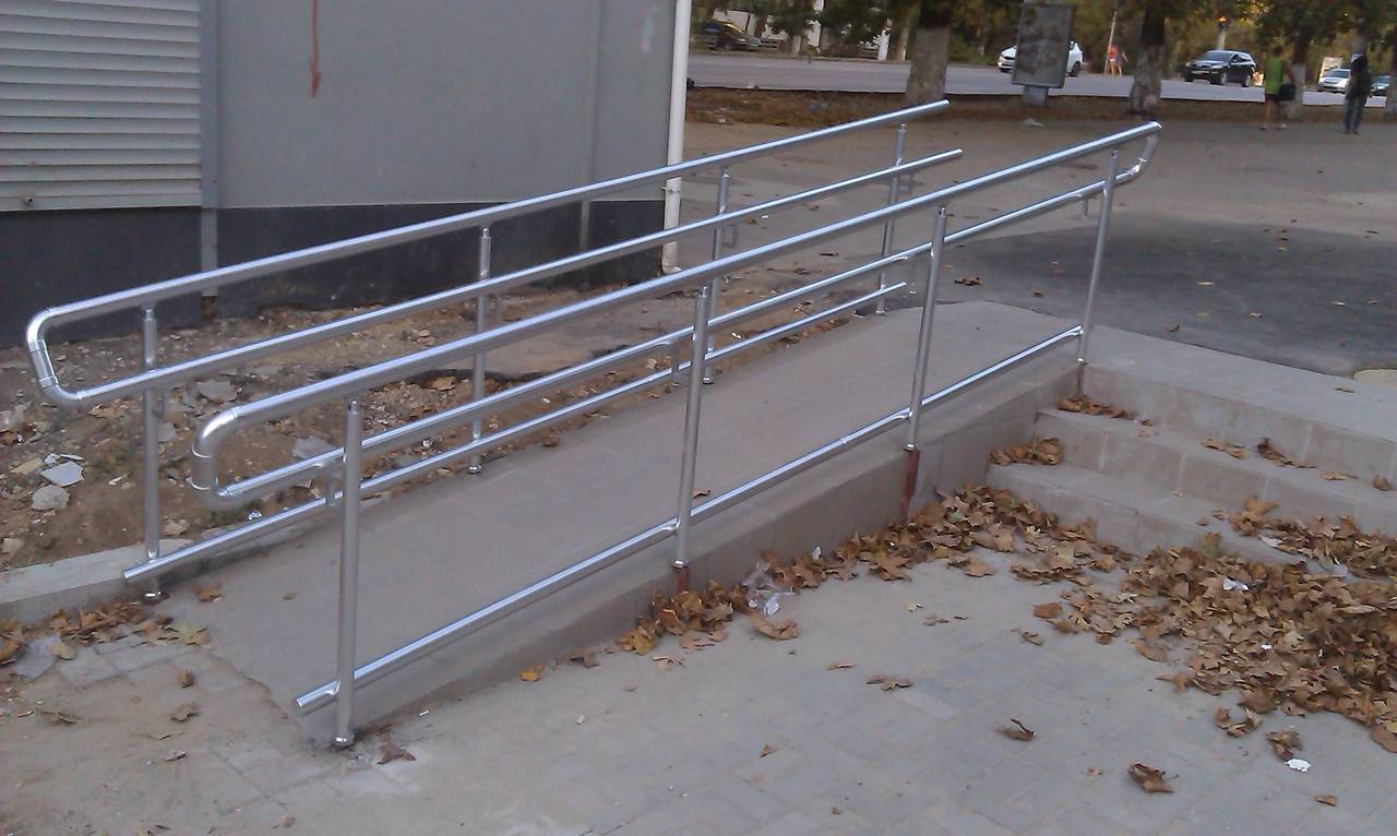 Для повышения комфорта и ликвидации травматизма, конструкции для инвалидов должны оборудоваться металлическими поручнями. Согласно СП 59.13330.2012, перила должны устанавливаться на всех изделиях, высотой более 0,45 м. Кроме того, в документе указаны следующие требования к ограждениям: