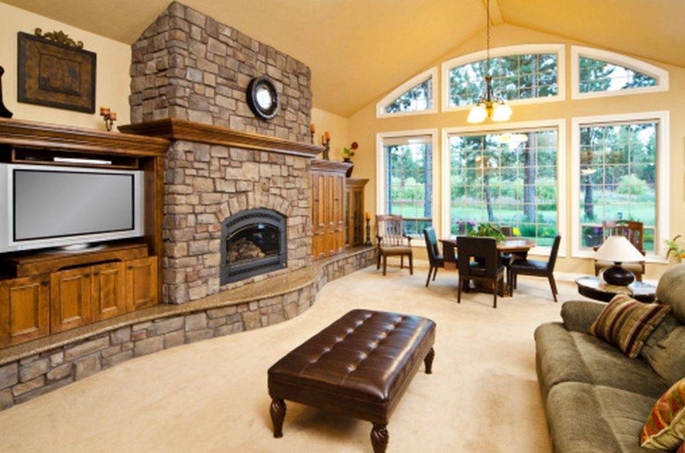 Демократичная обстановка американского ранчо отлично воспринимается в зале загородного дома. Грубо обработанное дерево, камень, простые хлопковые и шерстяные ткани с клетчатым рисунком, потрескивающие в камине дрова создают расслабленную атмосферу, где всегда царит спокойствие и уют.