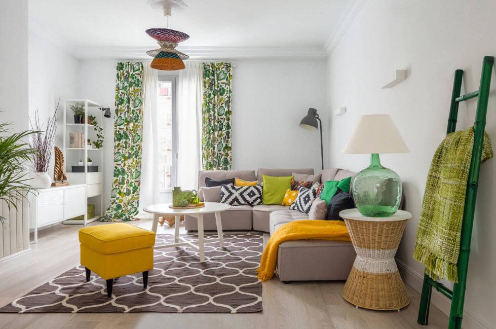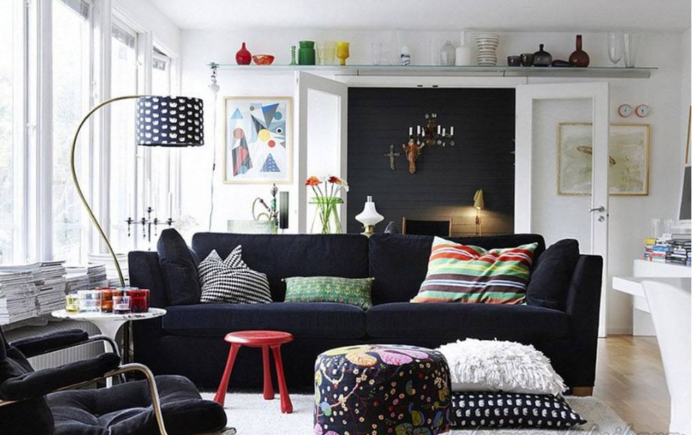 1. Наличие ярких акцентов. Это отличный способ оживить интерьер, в котором преобладают белый, черный или серый цвета. Наполнить дом энергией и цветом можно с помощью текстиля, штор, подушек, посуды, постеров и других декоративных элементов.