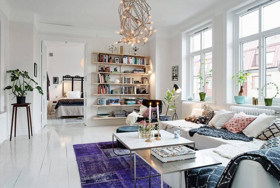 Как понятно из самого названия, стиль пришел к нам из стран Скандинавии на севере Европы — Финляндии, Норвегии, но более всех к созданию этого направления приложили руку шведы. Белый цвет в таком интерьере доминирует, чтобы привнести обилие света в северные дома.