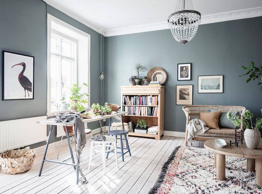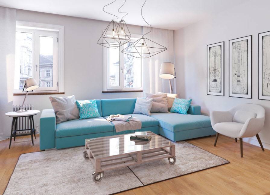 декоративные предметы могут быть яркими, например, голубыми или зелеными;