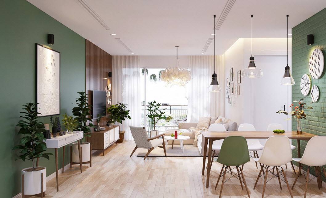 Цвета и материалы. Основное сочетание – это светлое дерево и другие натуральные материалы, скомбинированные с белым. Разбавить интерьер помогут яркие акценты – текстиль, предметы декора и элементы мебели.