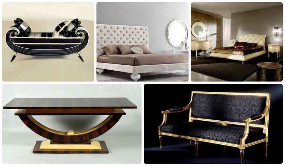Геометрия прослеживается в простых формах. Мебель в стиле Арт Деко изготавливают из дорогих пород дерева.