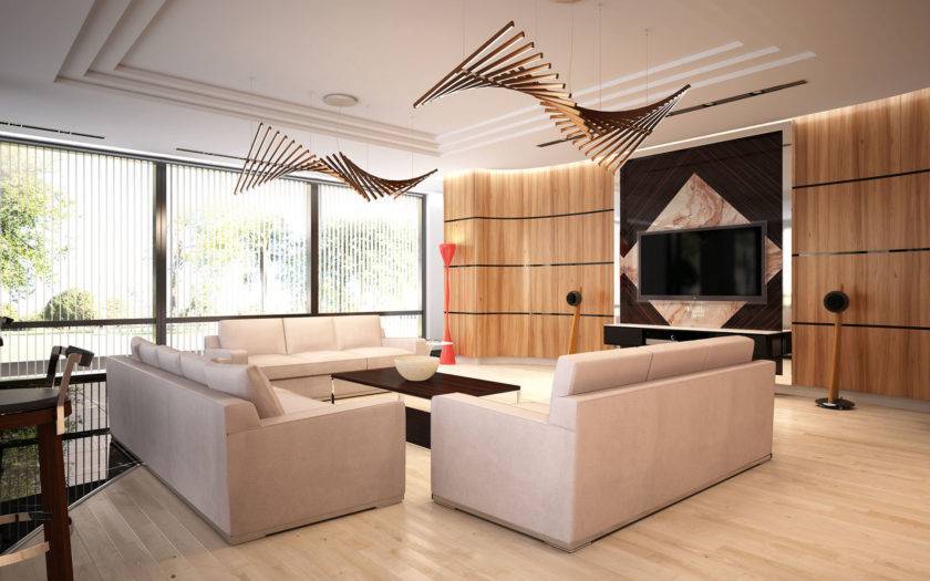 В минималистичном дизайне может быть декорирована гостиная любой площади — и малогабаритная, как в квартирах-хрущевках, и просторная, как в частных загородных домах современной постройки.
