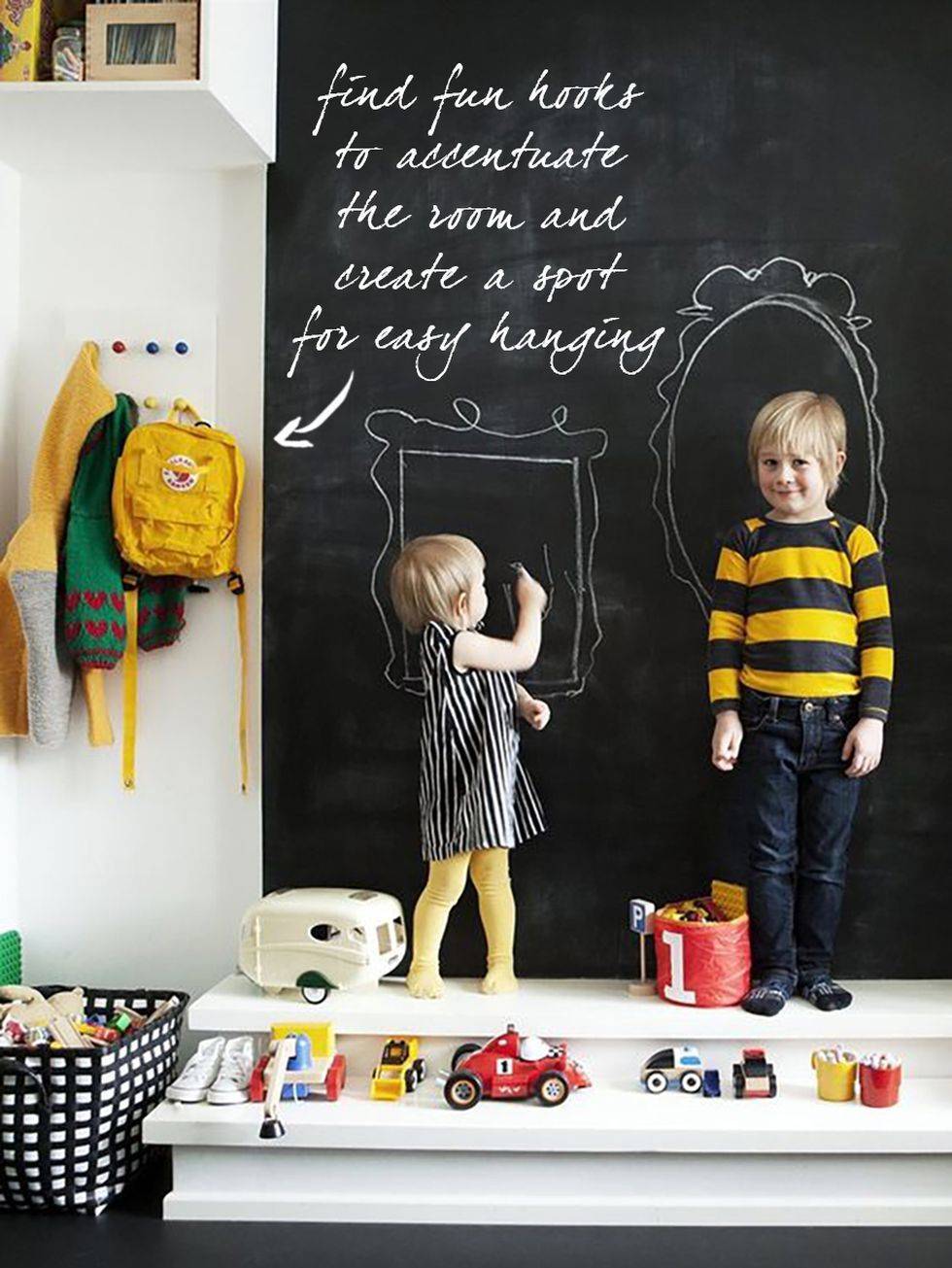 Дети любят рисовать мелом, вы будете поражены их художественными способностями! Грифельная доска в сознании ребенка — это часть свободы, стена, где им разрешено создавать шедевры! Это место, где они могут раскрыть свое воображение, удерживаемое под контролем только размером стены. Если стена находится позади мебели, обеспечьте им легкий доступ к ней.