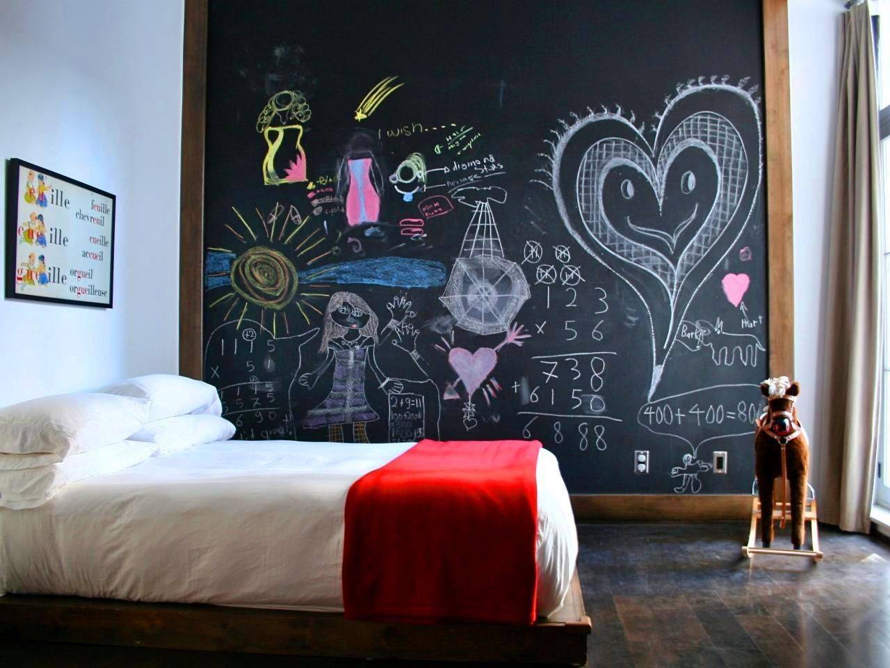 Еще на грифельной доске или стене удобно делать записи. Всегда можно изобразить что-то диковинное, чтобы разнообразить внешний облик комнаты.
