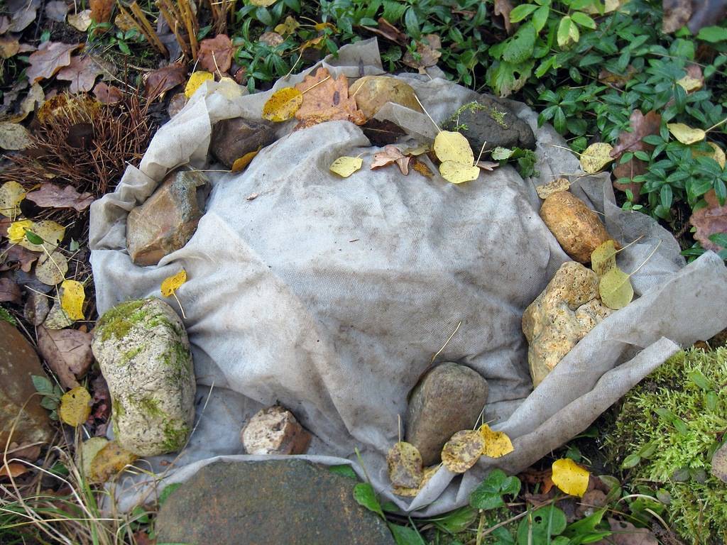 - После установления стабильной морозной температуры укрыть посадки агрополотном, придавив материал утяжелителями.