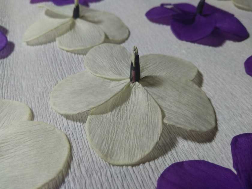 - внутренние лепестки, которые оказываются плотно прижаты к стеблю, крепятся клеем;