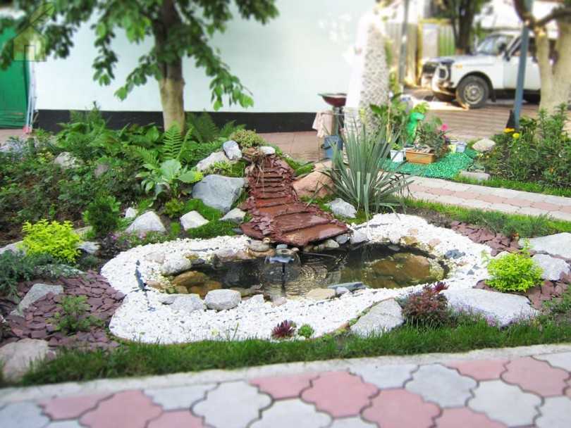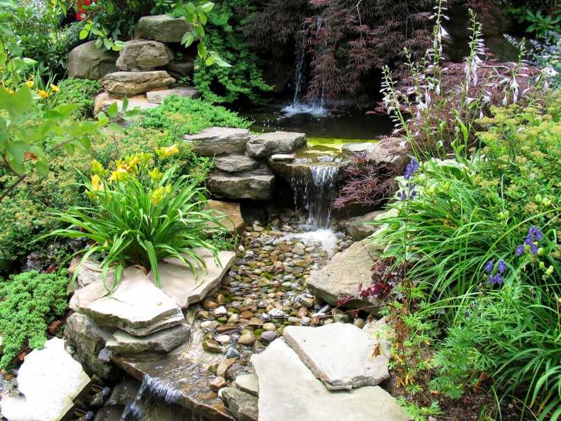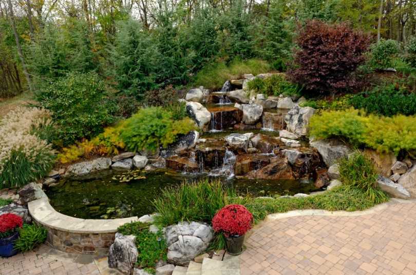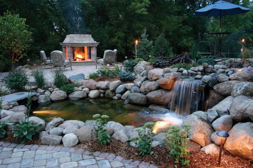 На фото самодельный пруд с водопадом