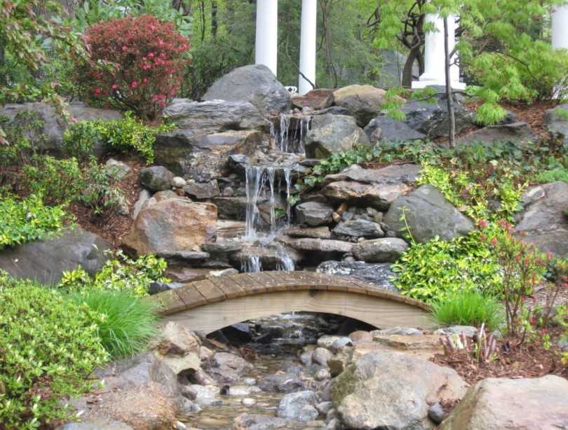 Совет! Водопад или фонтан делают и отдельно, совмещая с клумбой или располагая в любом подходящем уголке.