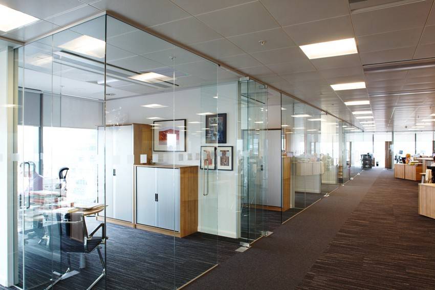 Много лет не теряют свою популярность офисные перегородки из стекла. Организовывать рабочее пространство с их помощью легко и удобно. Стекло подойдет для зонирования небольших офисов, когда необходимо создать несколько индивидуальных рабочих мест. Не менее актуальна установка стеклянных офисных перегородок в помещениях с большой площадью. При этом пространство не будет загромождаться, а максимальное количество света визуально подчеркнет все достоинства большого офиса.