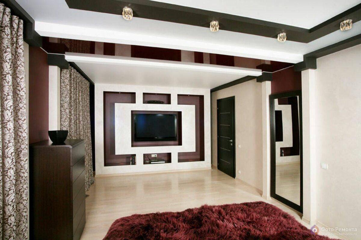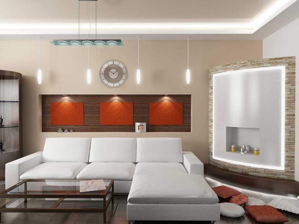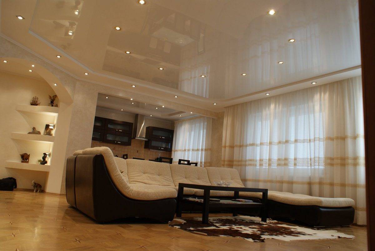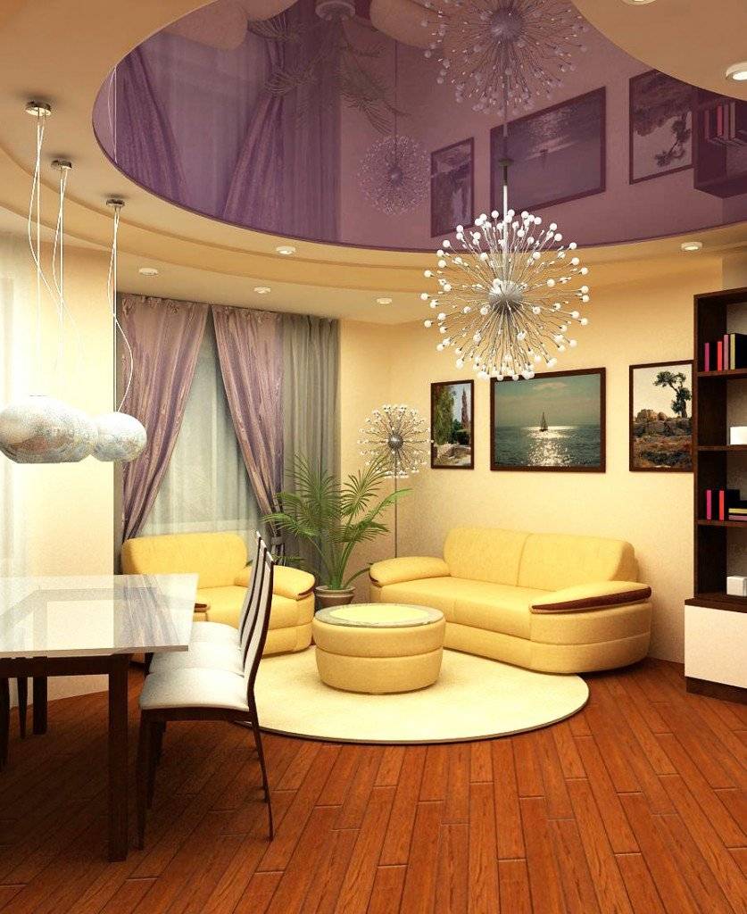 Современный потолок дает много возможностей в дизайне интерьера. Данная плоскость гостиной может быть эффективно выделена. Благодаря современным материалам и технологиям легко сделать декоративные подрезы, углубления, отверстия, узоры или разные уровни. Стильный дизайн интерьера создаст неповторимую атмосферу.