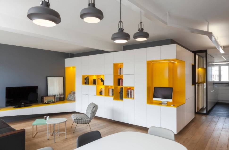 В таком случае важно правильно организовать рабочее пространство. Если нет возможности иметь полноценный кабинет, хорошим решением будет его сочетание с гостиной