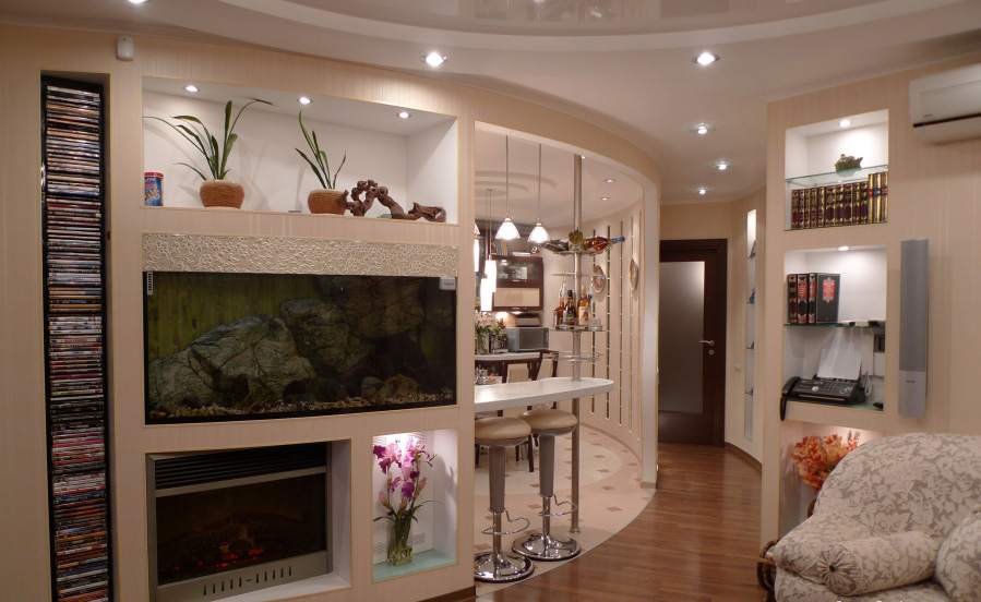 Не смотря на то, что ниша в гостиной может быть архитектурной задумкой или, наоборот, создаваться своими руками, для того, чтобы она красиво смотрелась в интерьере и отвечала всем требованиям хозяев, следует позаботиться о её декорировании. И в этом случае дизайнеры предлагают использовать множество идей, выбор которых полностью зависит от общей стилистики интерьера, вкусовых предпочтений и фантазии хозяев помещения.