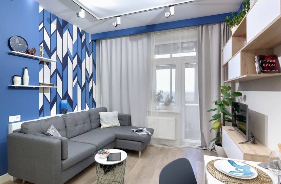 Палитра оттенков синего цвета будет актуальной, как никогда раньше. Ведь именно такие тона великолепно подходят для оформления гостиной. Смотрится это довольно лаконично, но в то же время стильно. Поэтому многие дизайнеры рекомендуют в качестве основного цвета обоев выбирать пастельный голубой. Если же вы хотите комбинированный вариант, то можно использовать и более яркие оттенки или же с подходящим рисунком. Они придают интерьеру живости и при этом делают гостиную более изысканной.