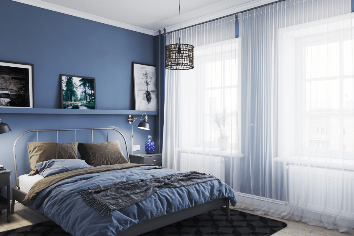 Голубой цвет в интерьере комнаты