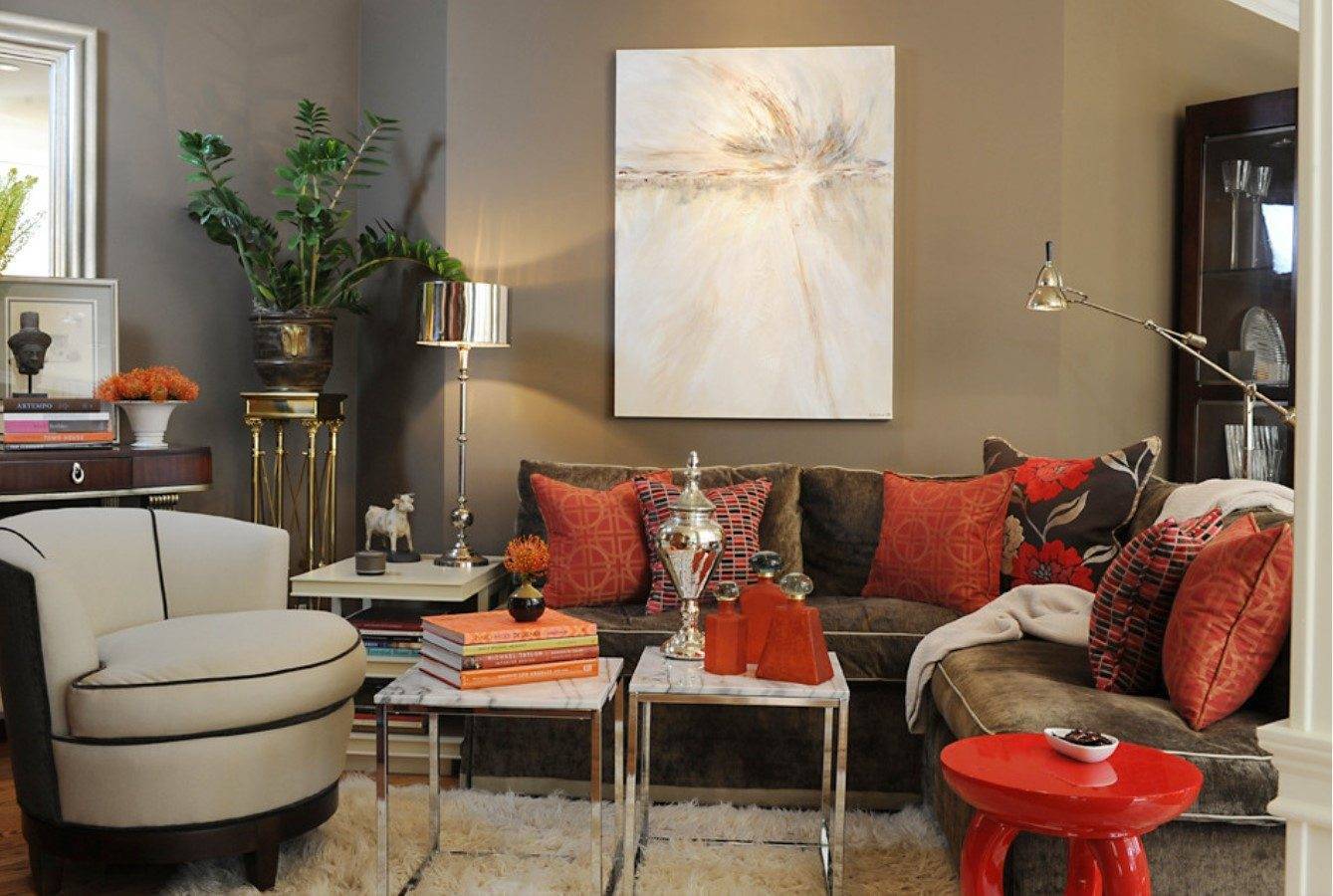 При поиске украшений для гостиной в коричневых тонах важно опираться не только на цветовую гамму предметов интерьера, но и на стилистику самого помещения:
