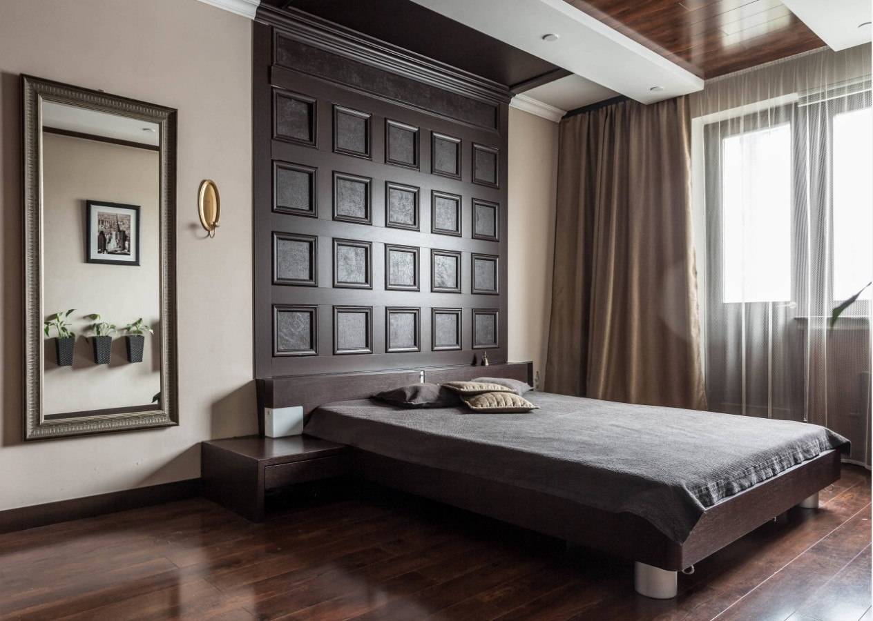 В спальне данный цвет будет способствовать полному расслаблению и спокойному отдыху. Небольшое помещение, полностью отделанное разными тонами одного цвета, смотрится невероятно элегантно. Белое постельное белье и потолок разбавят коричневый цвет.