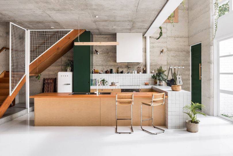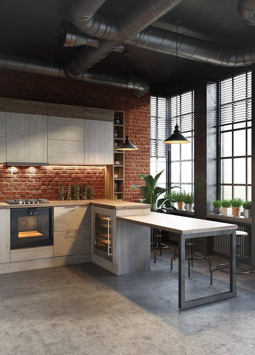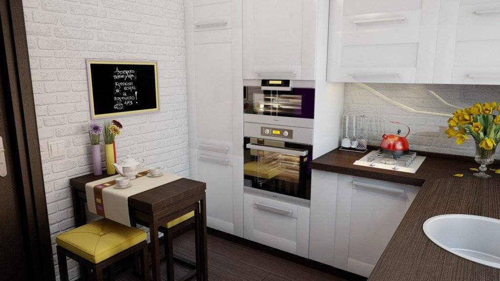 Это решение подходит для домов небольшой площади. Чтобы пространства стало больше, кухню совмещают с соседними комнатами. Так, например, стена может быть переделана в барную стойку, которая будет выполнять функцию стола.