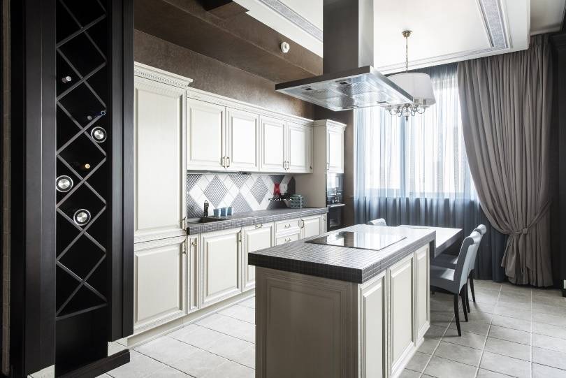 Совершенно дико будет смотреться кухня в классическом стиле, если весь дом оформлен в стиле хай-тек, и наоборот. Могут быть небольшие стилистические отклонения с учетом кухонной специфики и влияющих факторов, но общий подход должен сохраняться.