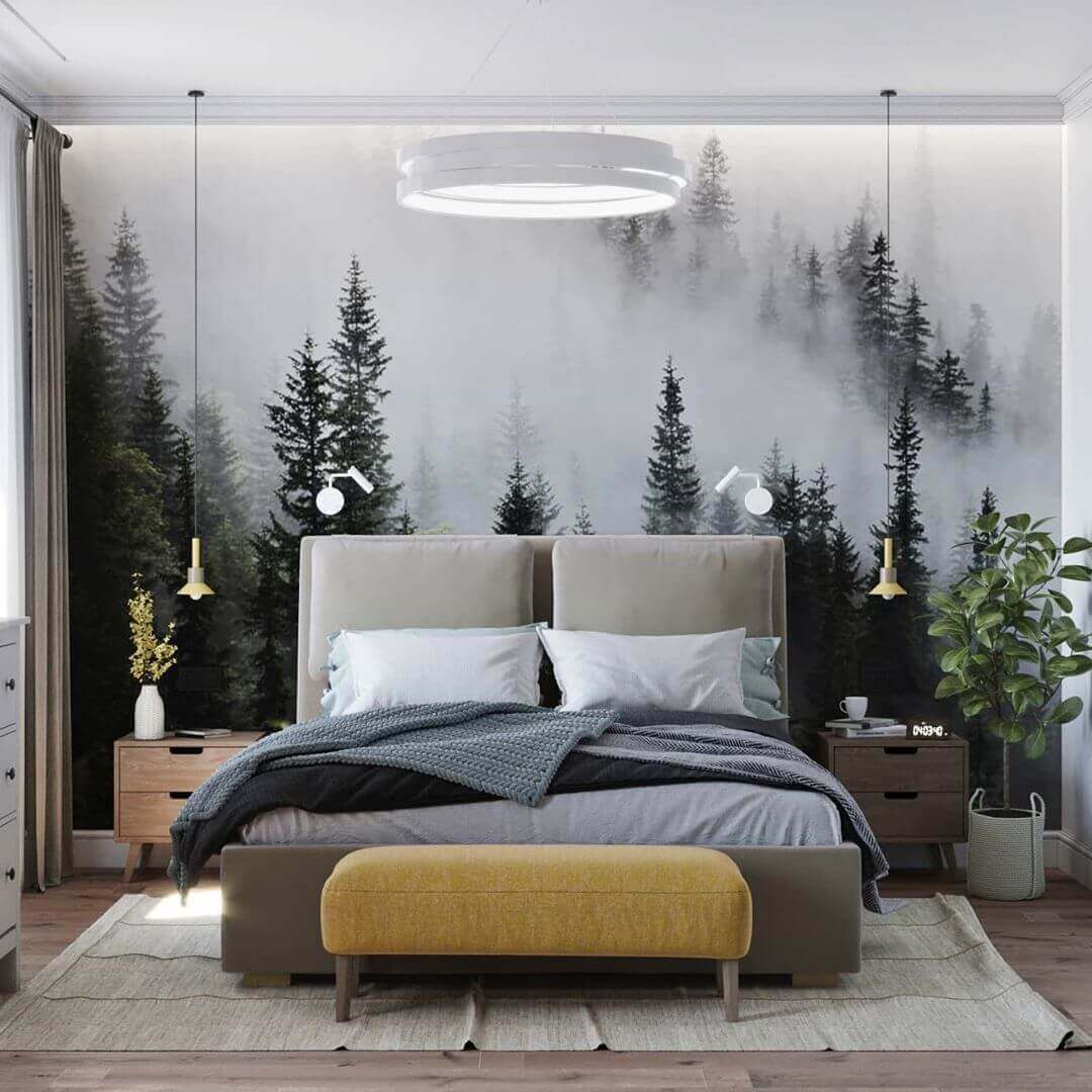 Совет. Фотообои с перспективой расширяют пространство. Обычно ими обклеивают стену за кроватью. Такой же эффект дают 3D-обои.