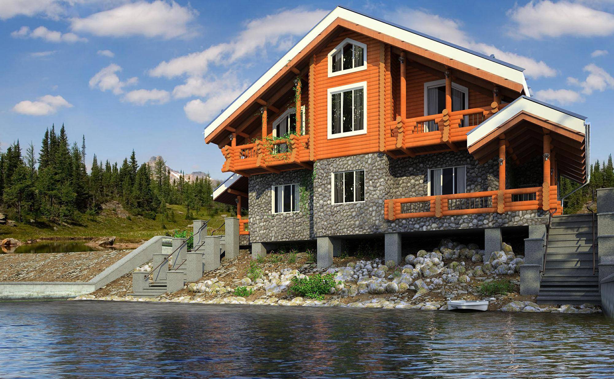 Дом в стиле шале у реки