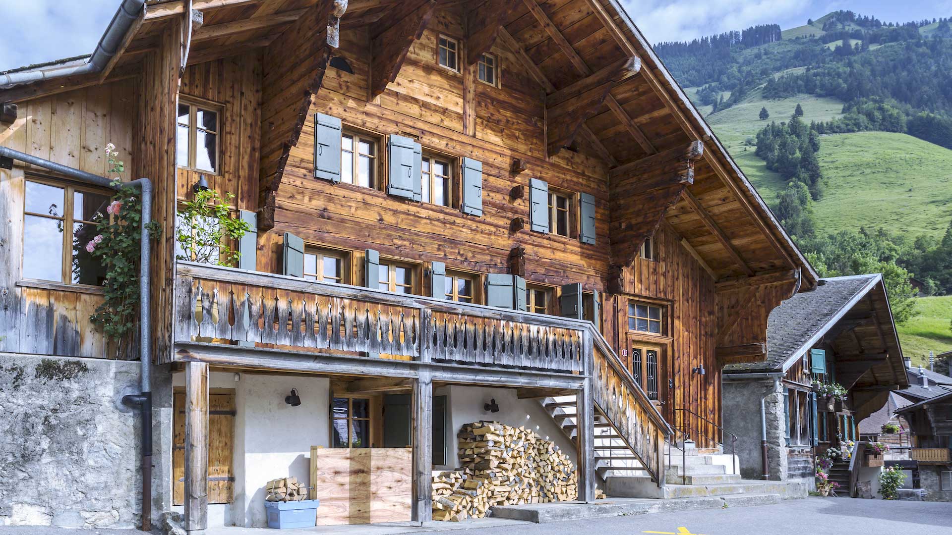Швейцарский загородный дом прошел долгий путь — он урбанизировался, но сохранил основы древних традиций. Дом строится на высоком фундаменте, имеет тяжелую двускатную крышу, чьи края нависают над фасадами. Внутренняя планировка здания включает в себя цокольный этаж (подвал), жилой этаж и мансарду, выделенную под спальни.