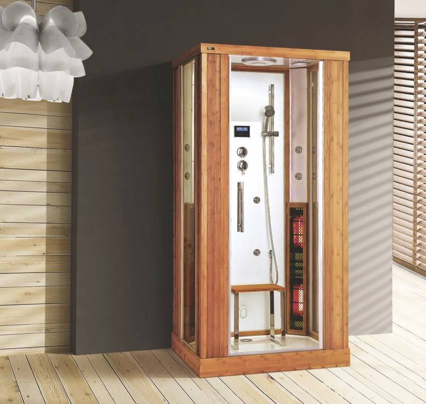 Более просторные кабины варьируются от 100 на 100 см до 120 на 120 см. Здесь можно чувствовать себя более свободно и не ограничивать свои движения. Обычно в такие модели устанавливают все стандартное оборудование: полки, штанги-держатели, оборудование для «тропического дождя», сидение, различные держатели для душа на разных уровнях и другое. Для такого «шкафа» уже потребуется просторная ванная комната. Компактное ее размещение в углу все-таки позволит более рационально использовать пространство, но места займет немало. Речь о компактности в таком случае уже не ведется.