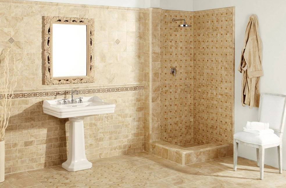 Керамическую плитку – традиционный материал для отделки ванной комнаты, заслуживший доверием привлекательным внешним видом и прекрасными эксплуатационными характеристиками. Плитку можно использовать для отделки стен и потолка, а широкий выбор дизайнерских решений позволяет применить матовые и глянцевые поверхности различной цветовой гаммы, благодаря чему материал уместен при любом стиле интерьера. Особой популярностью пользуются плиты, повторяющие рисунок и текстуру камня, дерева.