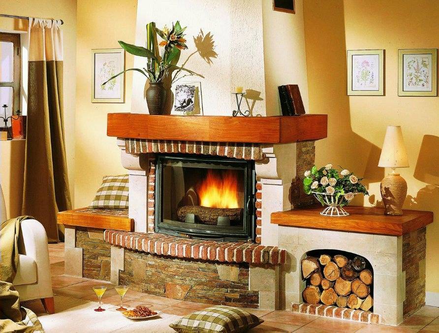 Камин из натурального камня является обязательным дополнением стиля прованс. Другие украшения используются редко.