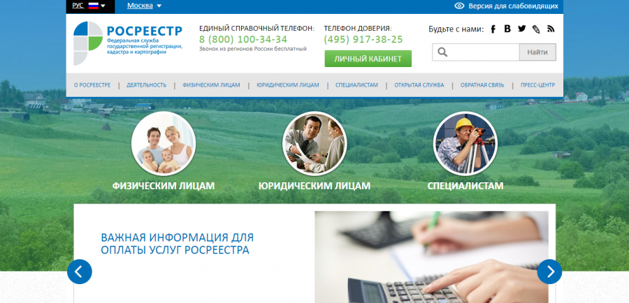 - На главной странице внизу вы увидите раздел под названием «электронные услуги и сервисы», а в нем же – справочный раздел, предоставляющий информацию о недвижимости в режиме онлайн.
