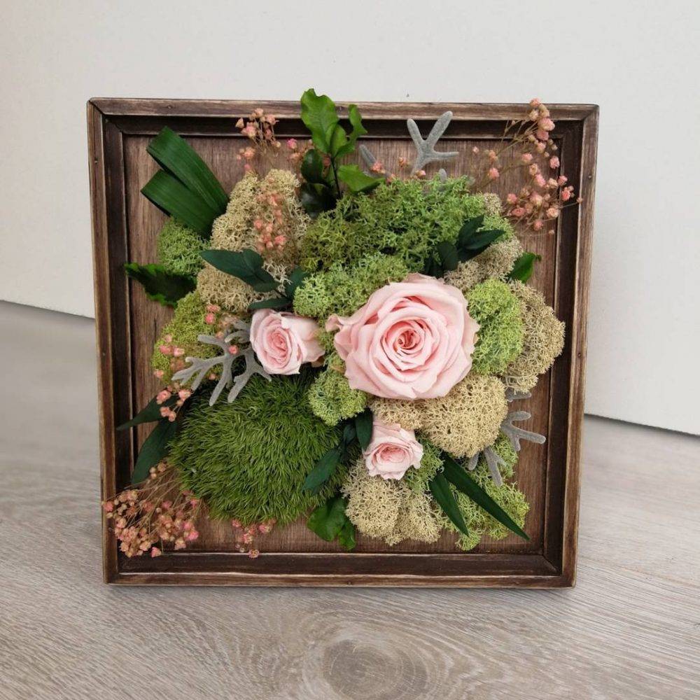 Бывает сложно выделить место для вазы или горшка, в этом случае выручит флористическая композиция в виде панно