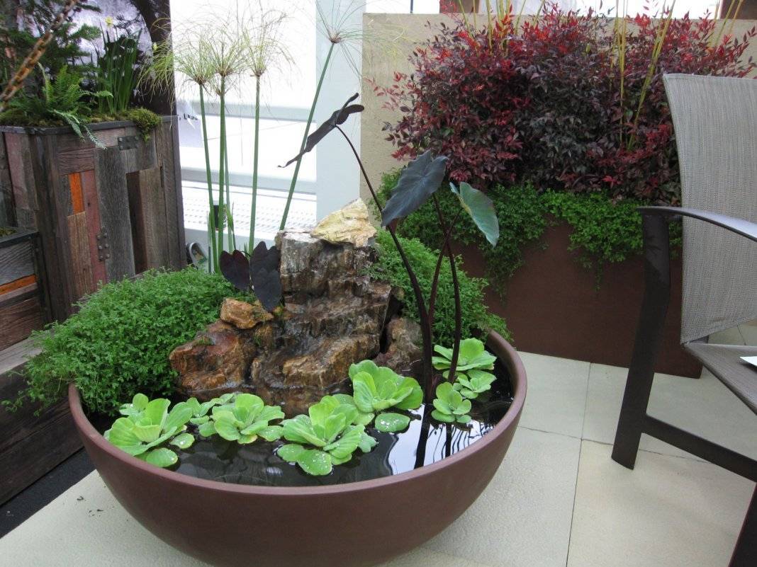 Вообще, мини-прудики делают и из баков, бочек, кастрюль, даже цветочных горшков. Главное, чтобы был корпус, а оформить его не очень сложно: постепенно приходит опыт. Ставят их в саду, на даче, возле дома. Есть возможность подвести воду, сделать ручеек, его можно развести под деревья, например или кустарники. И красота и польза одновременно.