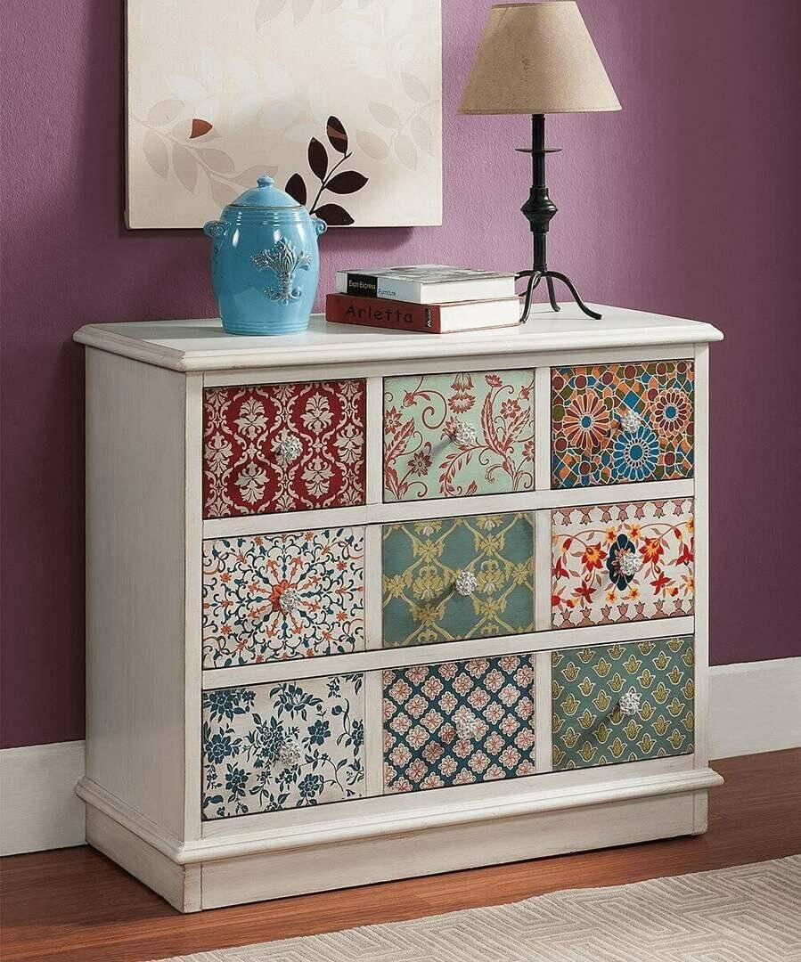 Декупаж шкафа с использованием обоев и тканей в домашних условиях