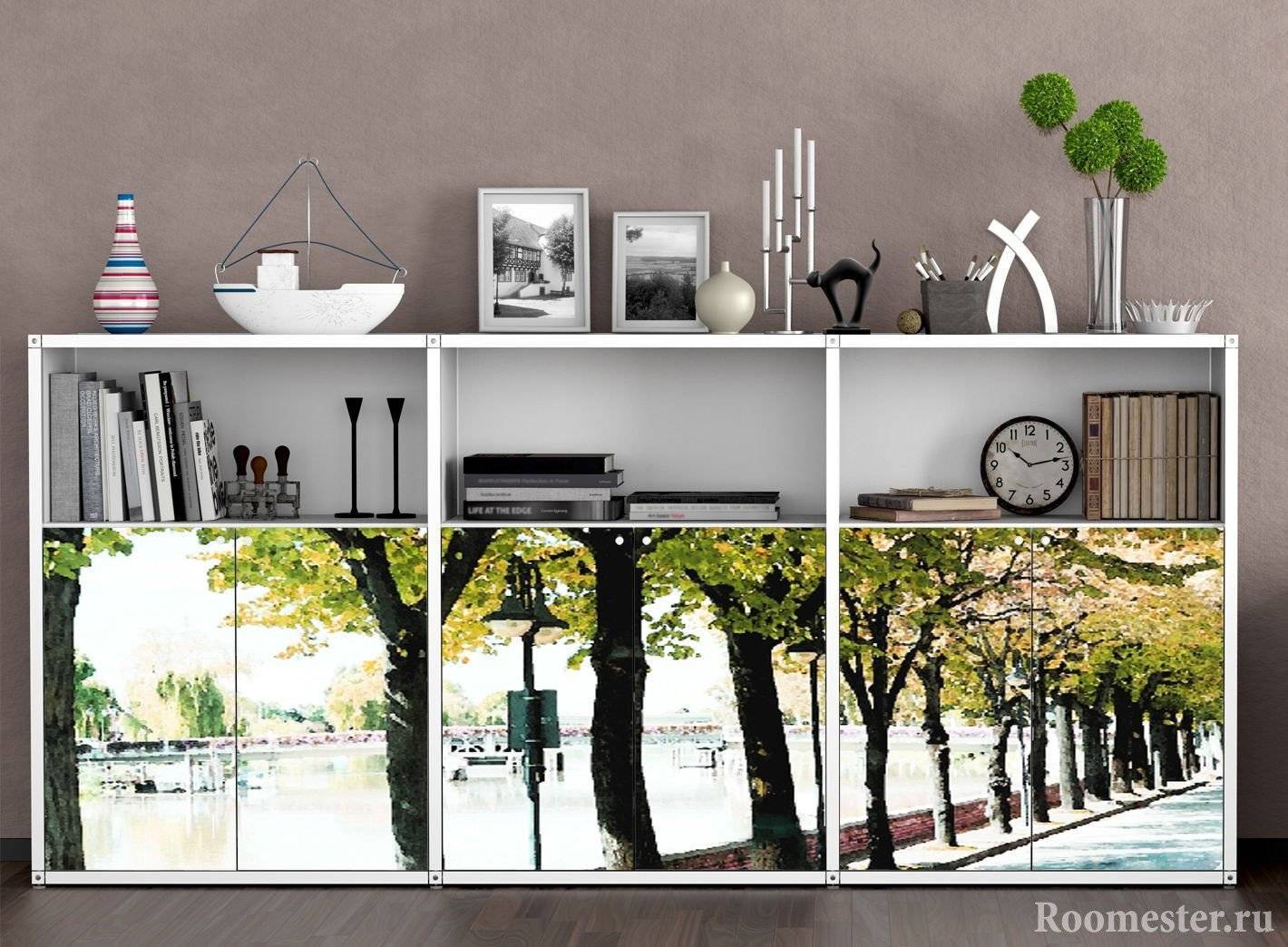 Шкаф, украшенный картиной из маленьких деталей, станет главным «героем» помещения и привлечет внимание гостей. Особенно, когда они узнают, кто является автором изделия