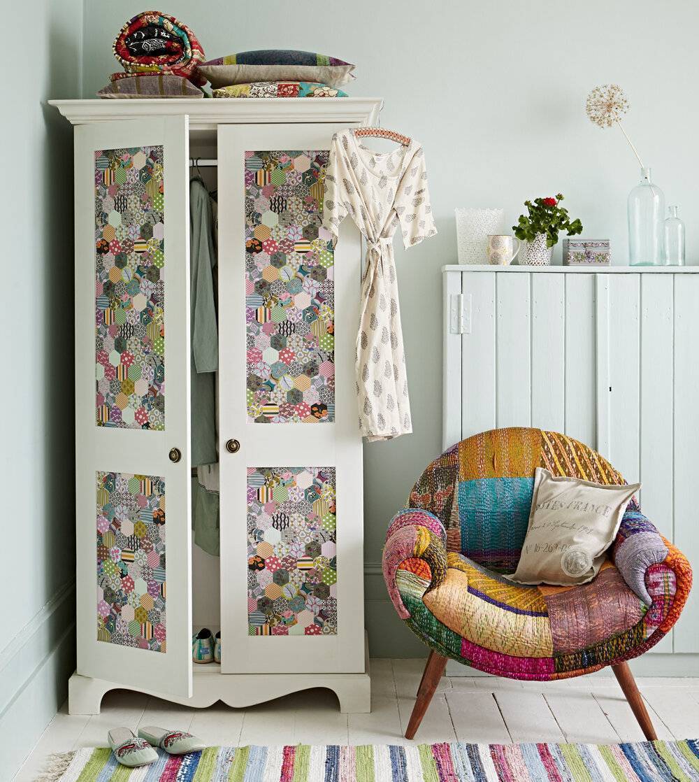 Конечно, такой вид декора плохо скрывает недостатки поверхности предмета, поэтому последний нужно предварительно подготовить. Обычно, небольшой работы с наждачной бумагой для этого достаточно. Зато в результате вы получите совсем новый шкаф!