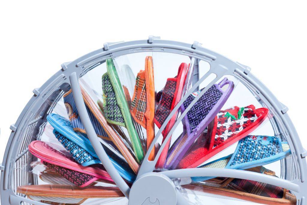 Колесо для обуви просто в использовании, его поворачивают и в это время выбирают необходимую пару